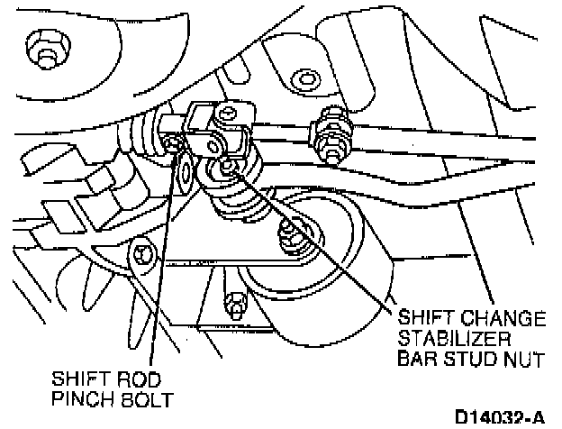 19. Install gear shift control stabilizer bar to its mounting stud. Install nut and tighten to 38-51 Nm (28-38 ft. lbs.).