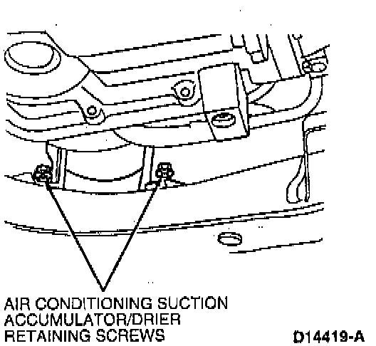 17. Install two screws retaining suction accumulator/drier to front sub-frame.