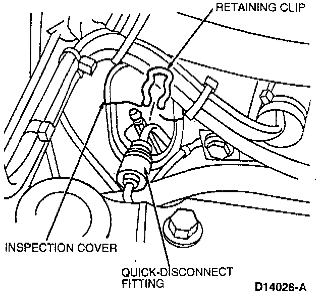 33. Install clutch slave cylinder hydraulic pressure quick-disconnect fitting onto the supply line by pushing it on. Install retaining clip.