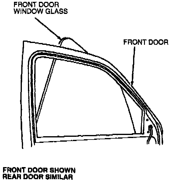 10. From outside of front door, raise the rear of front door window glass upward and lift front door window glass from front door.