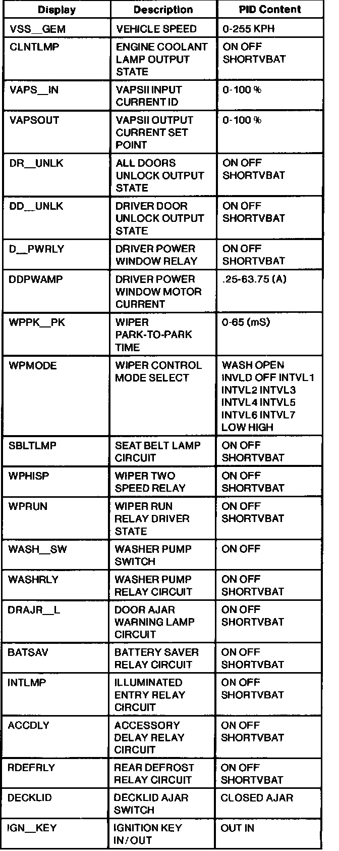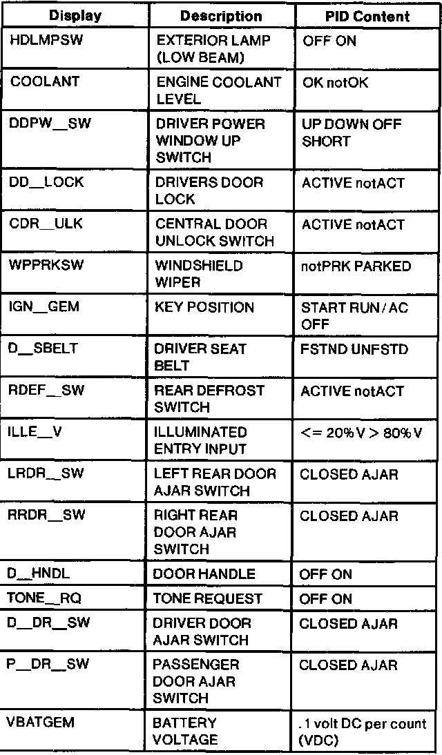 GEM Parameter Identification (PID) Index