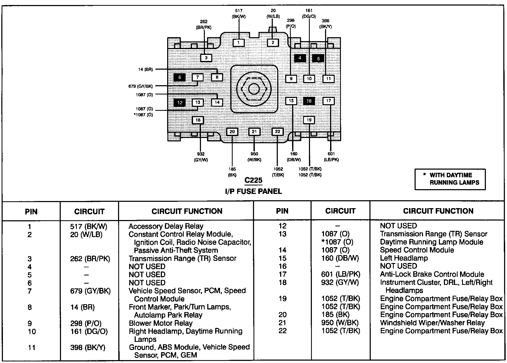 Instrument Panel Fuse Panel (C225):