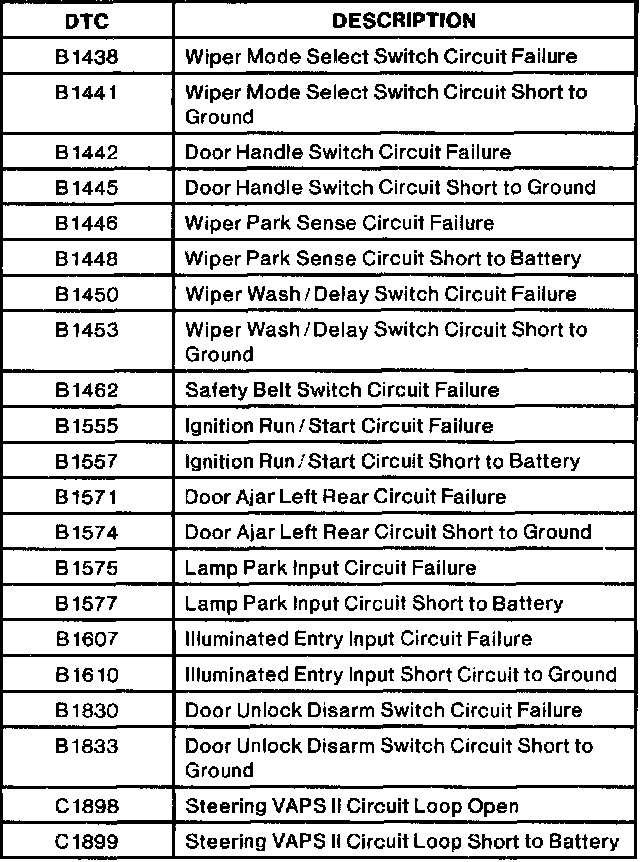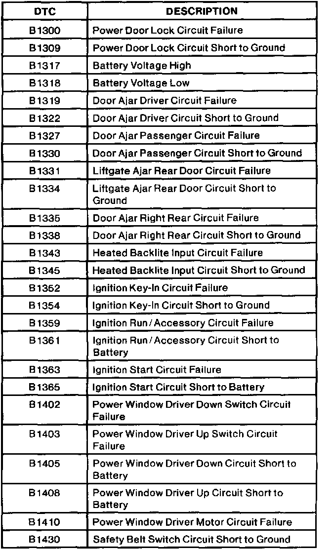GEM Wiggle Test Diagnostic Trouble Code (DTC) Index