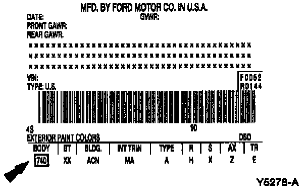 The Vehicle Certification (VC) label contains the manufacturer name, the month and year of manufacture, the certification statement, and the VIN. It also includes Gross Vehicle Weight Ratings (GVWR). The VC label is located on the left-hand door jamb and on several body parts.
