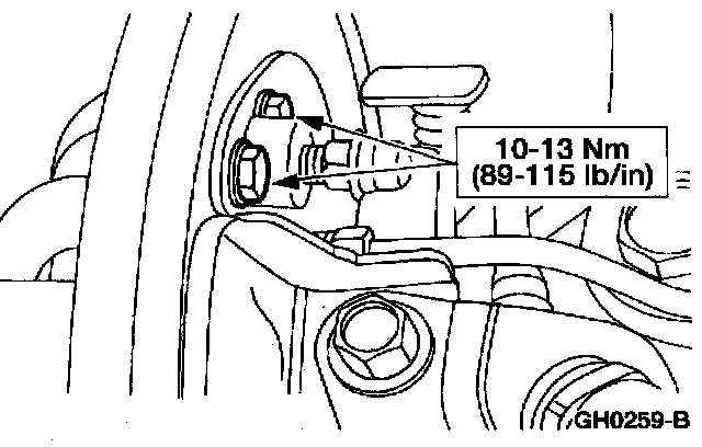 1. Install the rear wheel cylinder. Tighten the two bolts to 10-13 Nm (84-108 inch lbs.)
