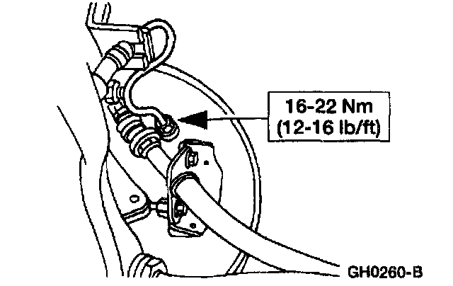 2. Install the wheel cylinder brake line. Tighten to 16-22 Nm (12-16 ft.lbs)