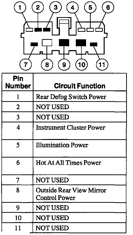 Interior Fuse Junction Panel. 11 Pin Connector:
