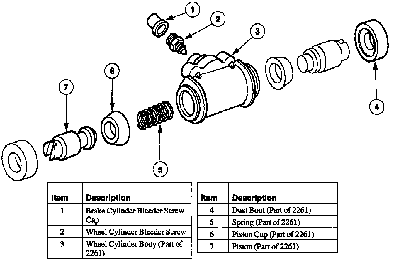 Wheel Cylinder. Internal Components: