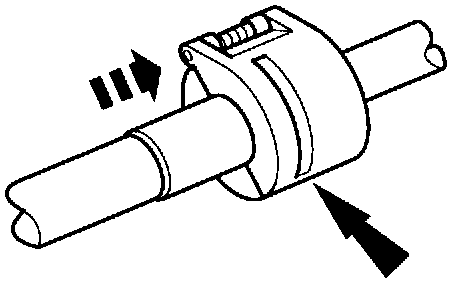 8. Fit the female fitting to the male fitting and push with a twisting motion until the A/C tube lock coupling spring snaps over the flared end of the female fitting.