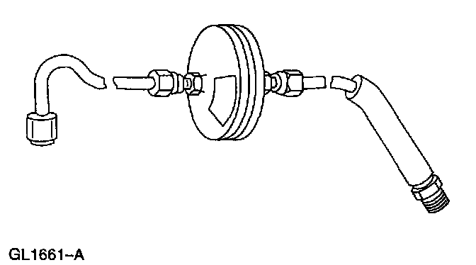 18. Allow the engine to cool. Recover the A/C system then remove the fittings, flexible hoses, and pancake filter from the condenser to evaporator tube. (It will be necessary to recover the system first). Discharging and Recovery