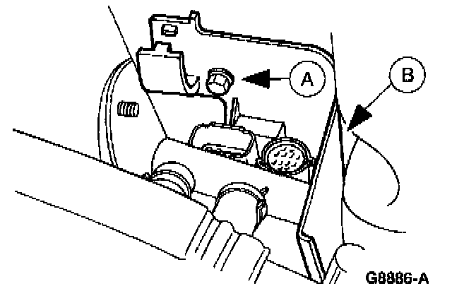 9. Remove the (A) bolt and position the (B) fuel charging wiring support bracket aside.