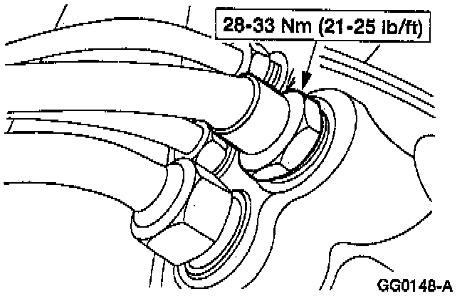 5. Disconnect the power steering pressure hose at the power steering pump. Cap the hose and pump.