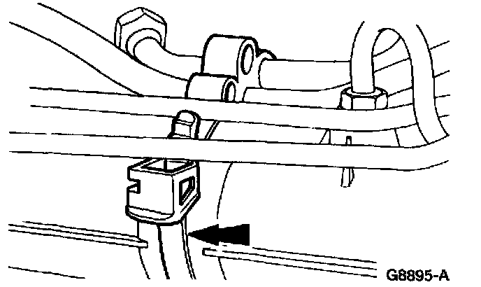 4. Remove the strap holding the hoses to the steering gear housing and discard.