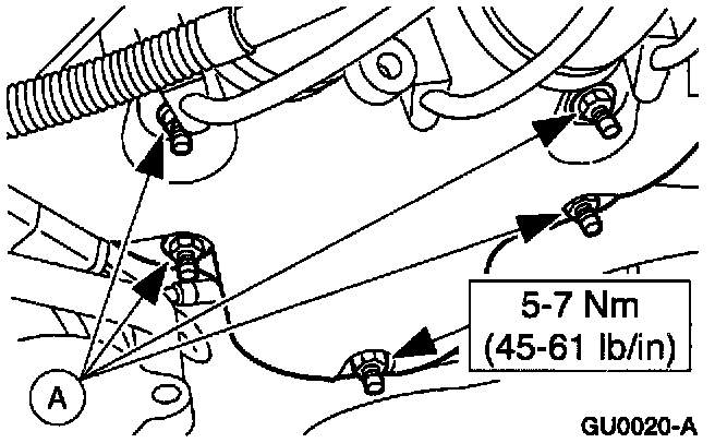 8. Install the (A) nuts and the exhaust manifold heat shield.
