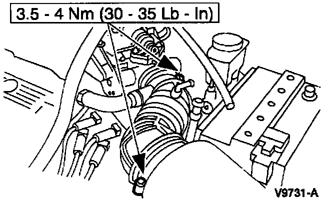 4. To install, reverse the removal procedure. Tighten clamps to 3.5-4 Nm (30-35 lb in).