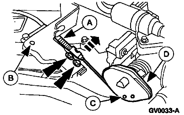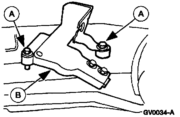 4. Remove the (A) bolts and the (B) accelerator cable bracket.