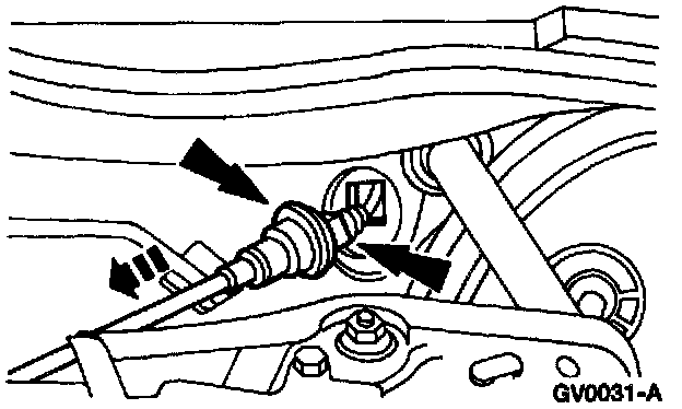 5. Squeeze the accelerator cable lock tabs and pull the accelerator cable out of the bulkhead.
