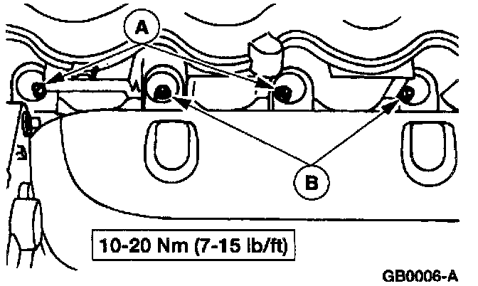 NOTE: Production installed spark plugs are color coded as follows: (A) orange, (B) blue.