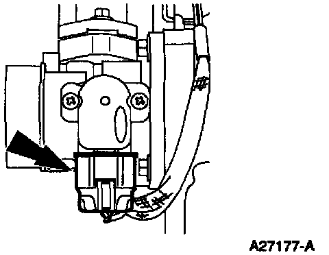 CAUTION: Slide the rotary tangs of the TP sensor, rotated one quarter turn clockwise away from their final installed position, into place over the throttle shaft blade, and then rotate the TP sensor counterclockwise only to the installed position. Failure to install the TP sensor in this manner may result in excessive idle speeds.