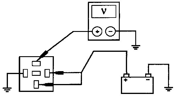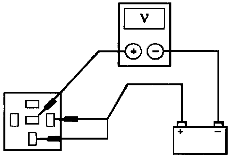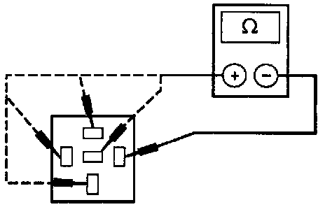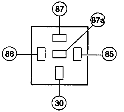 2. Using jumper wires, apply battery voltage to terminals 30 and 86. Measure voltage at terminal 87A. If voltage is less than 10 volts, replace relay. Otherwise, continue with test.