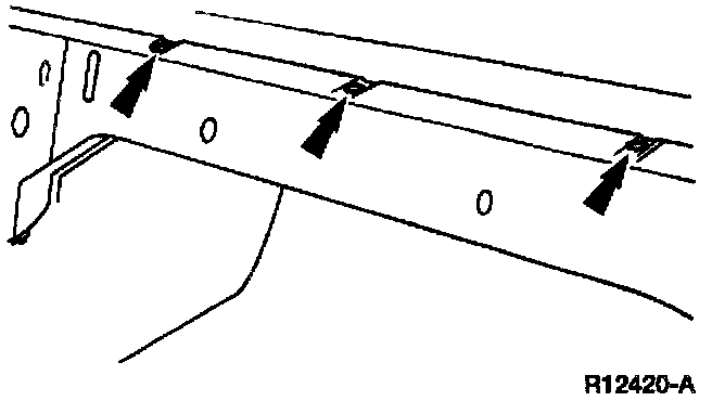 12. Use Safety Belt Bolt Bit T77L-2100-A to remove the rear safety belt retractor bolt and pull the rear safety belt tongue and anchor out of the passenger compartment into the luggage compartment.