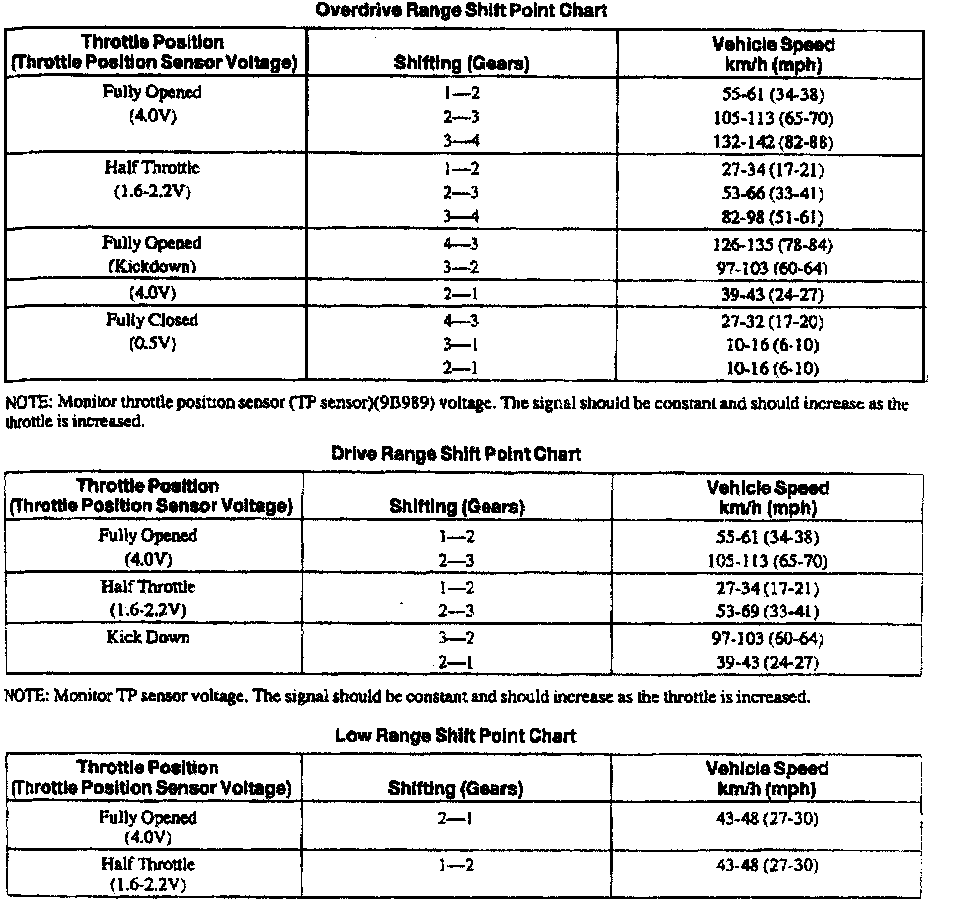 IF4E 4-spd A/T, Shift Point Chart (Escort/Tracer):