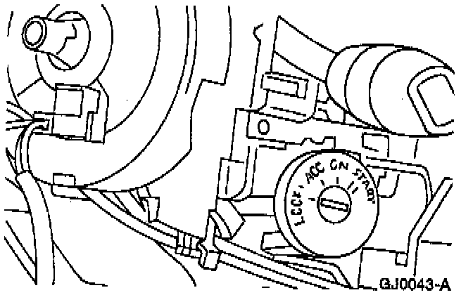 The lock cylinder engages the ignition switch. The ignition key reminder switch will signal the safety belt warning chime if the ignition key is left in the lock cylinder and the driver or a passenger door is opened. The ignition switch cannot be moved from the LOCK position without the use of the ignition key. For vehicles equipped with a manual transaxle, the key must be pushed in to turn from LOCK to ACC. When the ignition key is removed, the steering column lock tab will engage the steering column to lock the steering wheel.