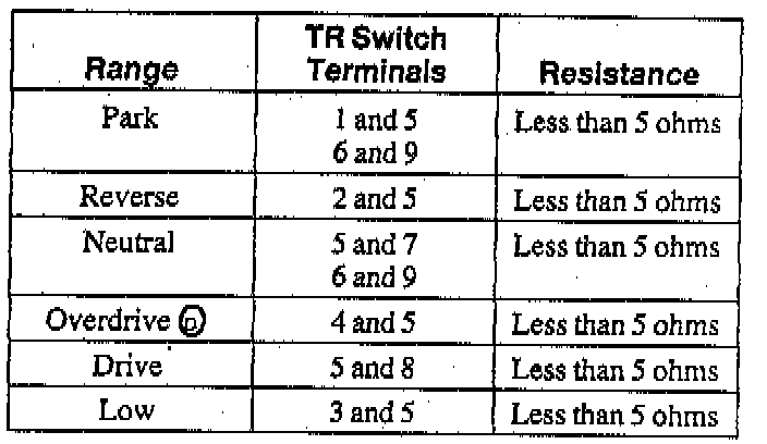 If any resistance is not as specified, replace the TR switch.