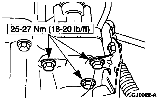 3. Remove the top two starter motor bolts.