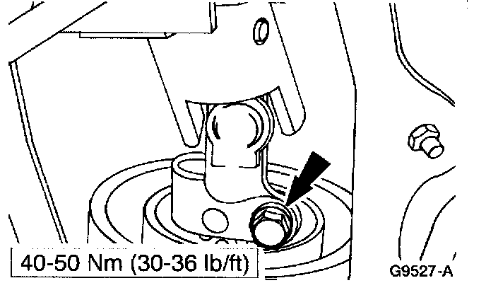 21. Install the steering column input shaft coupling to steering gear input shaft and control bolt.
