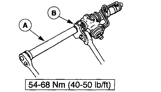 1. Use (A) Inner Tie Rod Socket Tool D9OP-3290-A or equivalent and install the (B) front wheel spindle tie rods.