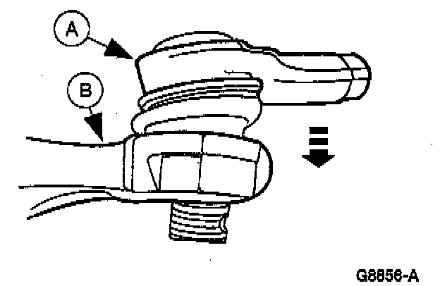 17. Install each (A) tie rod end into the (B) front wheel knuckle.