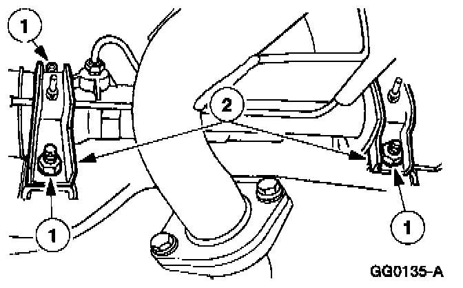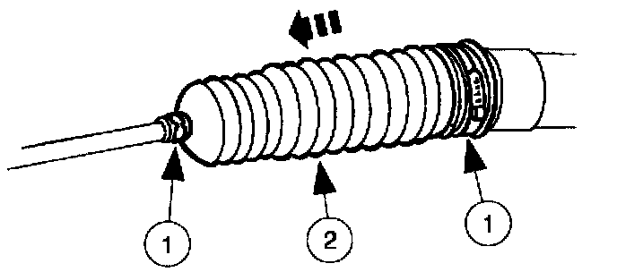 a. Remove the inner and outer front suspension steering ball stud dust seal clamps (1).