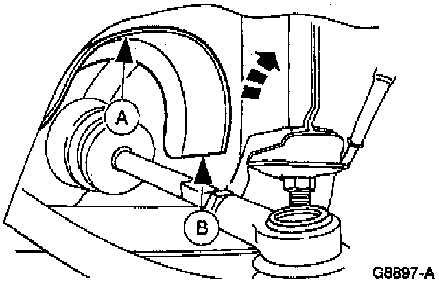 16. Remove the (A) pushpin and position the (B) RH boot shield aside.