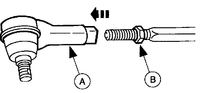 24. Remove both the (A) tie rod ends and the (B) tie rod end jam nuts.