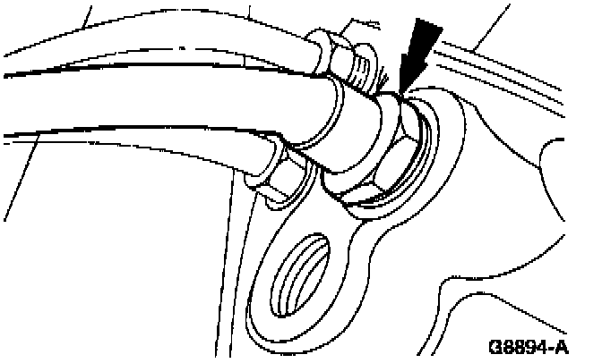 12. Remove the strap holding the hoses to the steering gear housing. Discard the strap.