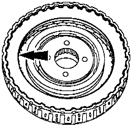(1) Use a feeler gauge to measure between the 3-4 clutch pressure plate and the 3-4 clutch pressure plate snap ring. The clearance should be 1.3-1.6 mm (0.051-0.063 inch). If the clearance is not within the specification, adjust it by selecting the proper snap ring. Refer to the Snap Ring Sizes chart below.