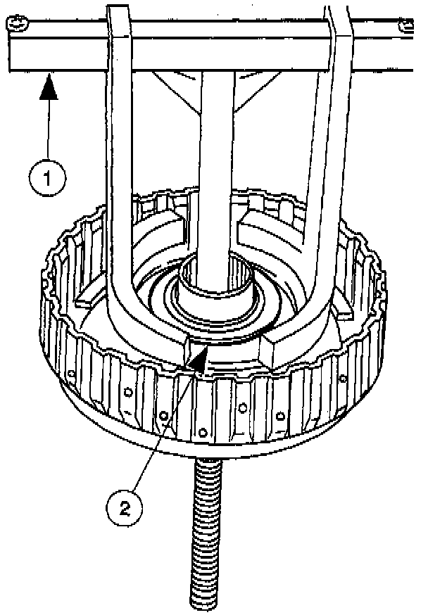 (1) Install the Clutch Spring Compressor T65L-77515-A and compress the 3-4 clutch piston spring and retainer. Compress the 3-4 clutch piston spring only enough to install the snap ring.