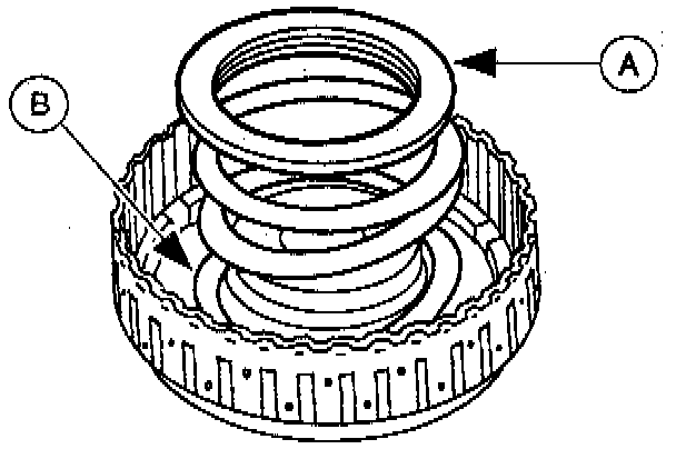 7. Install the (A) 3-4 clutch piston spring retainer and the (B) 3-4 clutch piston spring.