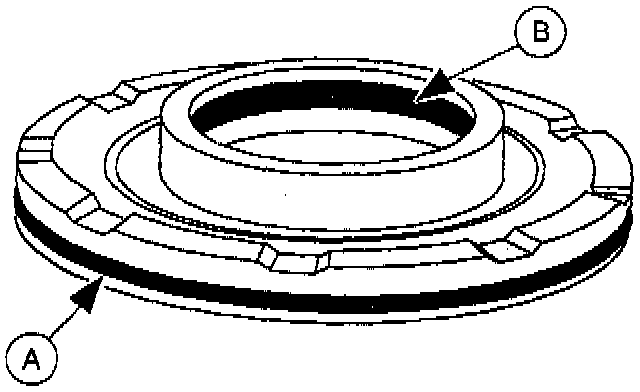 5. Apply the specified transaxle fluid to the 3-4 clutch piston large seal and the 3-4 clutch piston inner seal and install the (A) 3-4 clutch piston large seal and the (B) 3-4 clutch piston inner seal.
