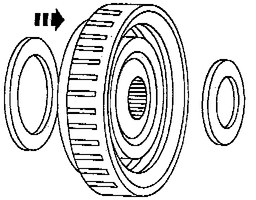 15. Apply petroleum jelly to the thrust bearings and install them on the 3-4 clutch cylinder.