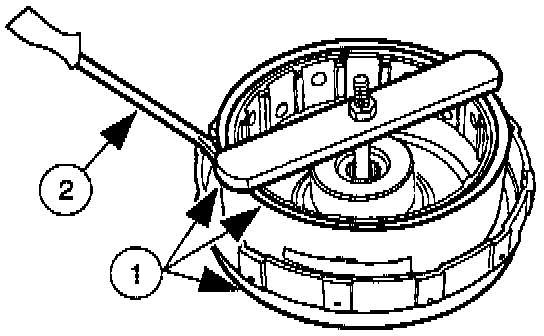 9. Install Clutch Spring Compressor T65L-77515-A and compress the coasting clutch return spring and retainer. Remove the coasting clutch return springs and retainer snap ring.