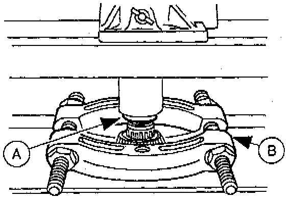 2. Use (A) Step Plate D80L-630-A and (B) Bearing Pulling Attachment D84L-1123-A to press off both output gear bearings.
