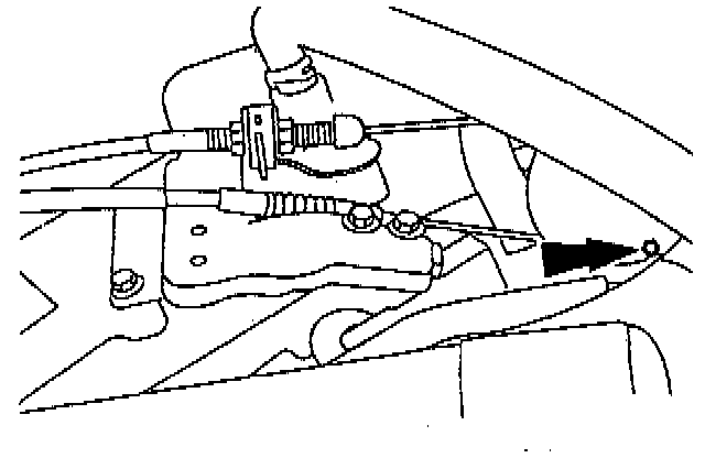 3. Remove the throttle valve control actuating cable bolt at the transaxle.