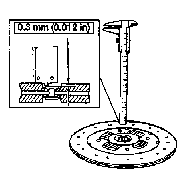 1. Check the clutch disc lining surface for hardening or the presence of oil.2. Check for worn clutch disc lining. Measure the minimum allowable depth to the rivet heads with a slide caliper.