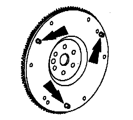 NOTE: Take care not to damage the flywheel dowel holes or surface areas around the flywheel dowel during removal.