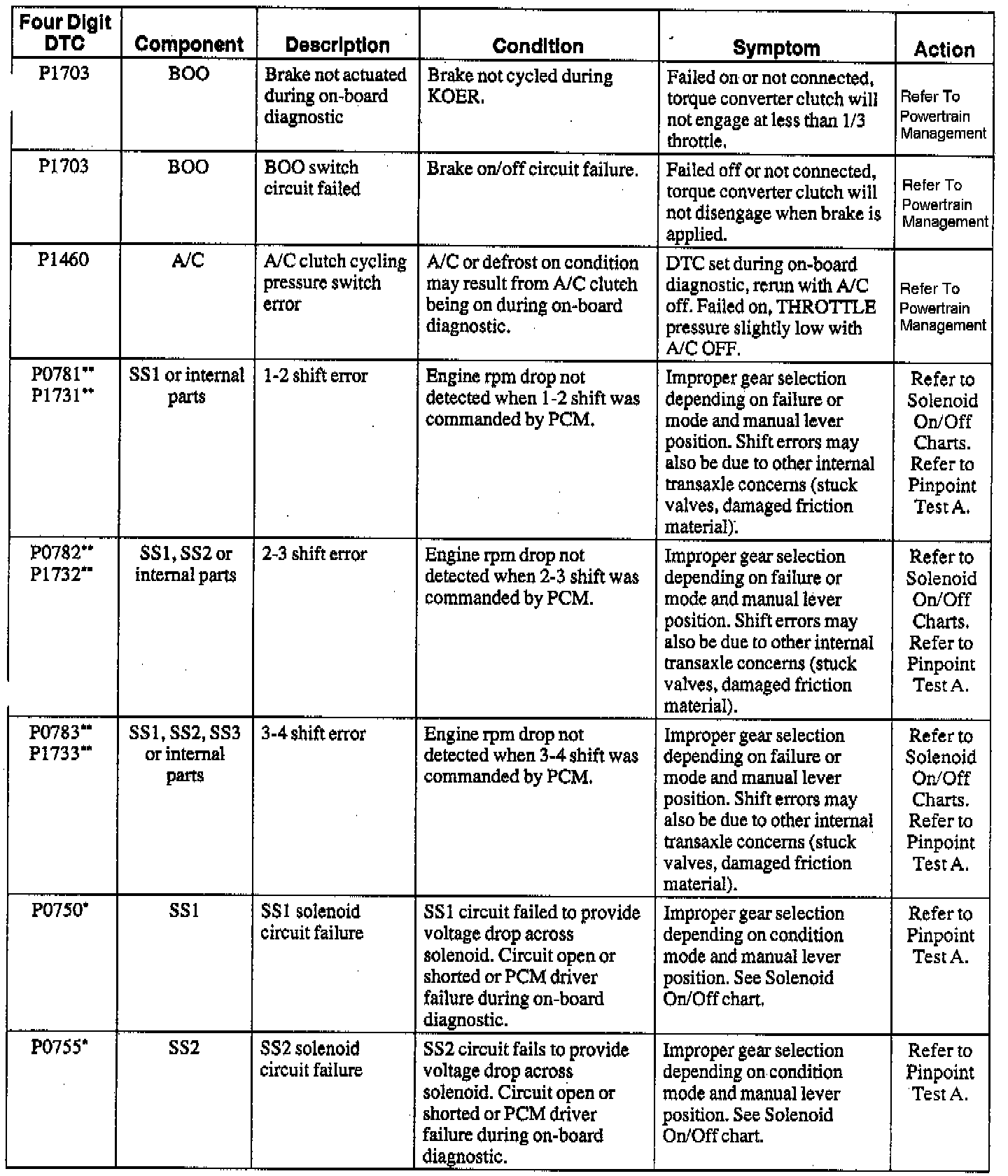 NOTE: When a DTC action contains a reference to Powertrain Management, go to the DTC index under Powertrain Management/Computers and Control Systems/System Diagnosis and follow the pinpoint test instructions for that DTC. Testing and Inspection