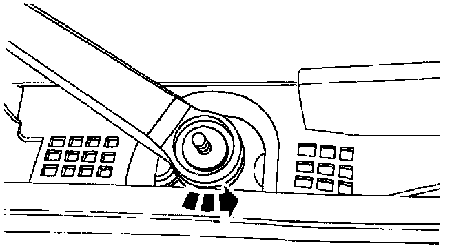4. Turn the windshield wiper/washer switch ON and allow the wiper pivot shafts to complete three to four cycles. Turn the windshield wiper/washer switch OFF.
