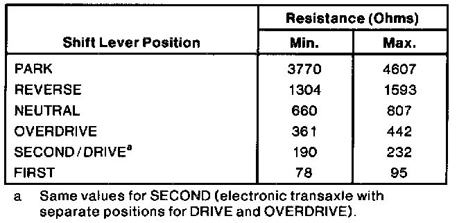 4. Record resistance in every gear position while moving the transaxle range selector lever to each position.