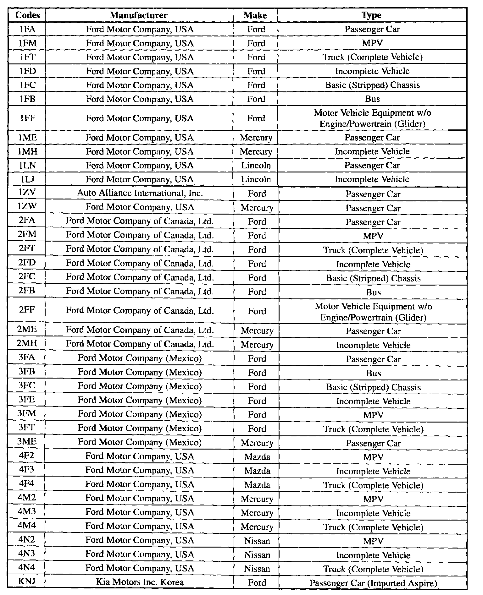 World Manufacturer Identifier (Vin Position 1,2,3):